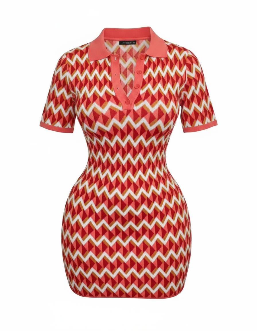 Striped Bodycon Mini Dress - Tangerine