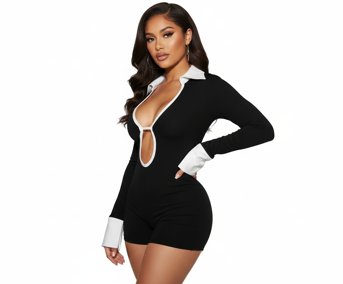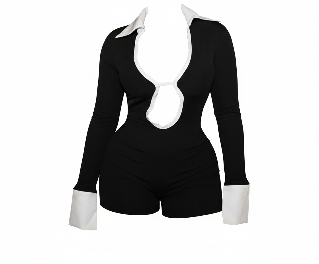 Discover effortless style with our Color Block Romper. Featuring a sleek black and white design, this sexy romper is perfect for any occasion. Made from high-quality materials, it offers the perfect combination of comfort and sophistication. Elevate your wardrobe with this must-have piece.