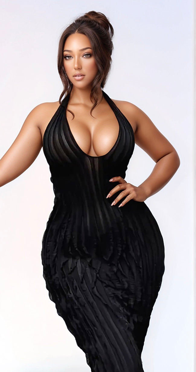 This sophisticated maxi dress boasts a timeless design with delicate ruffle accents and a chic halter neckline.